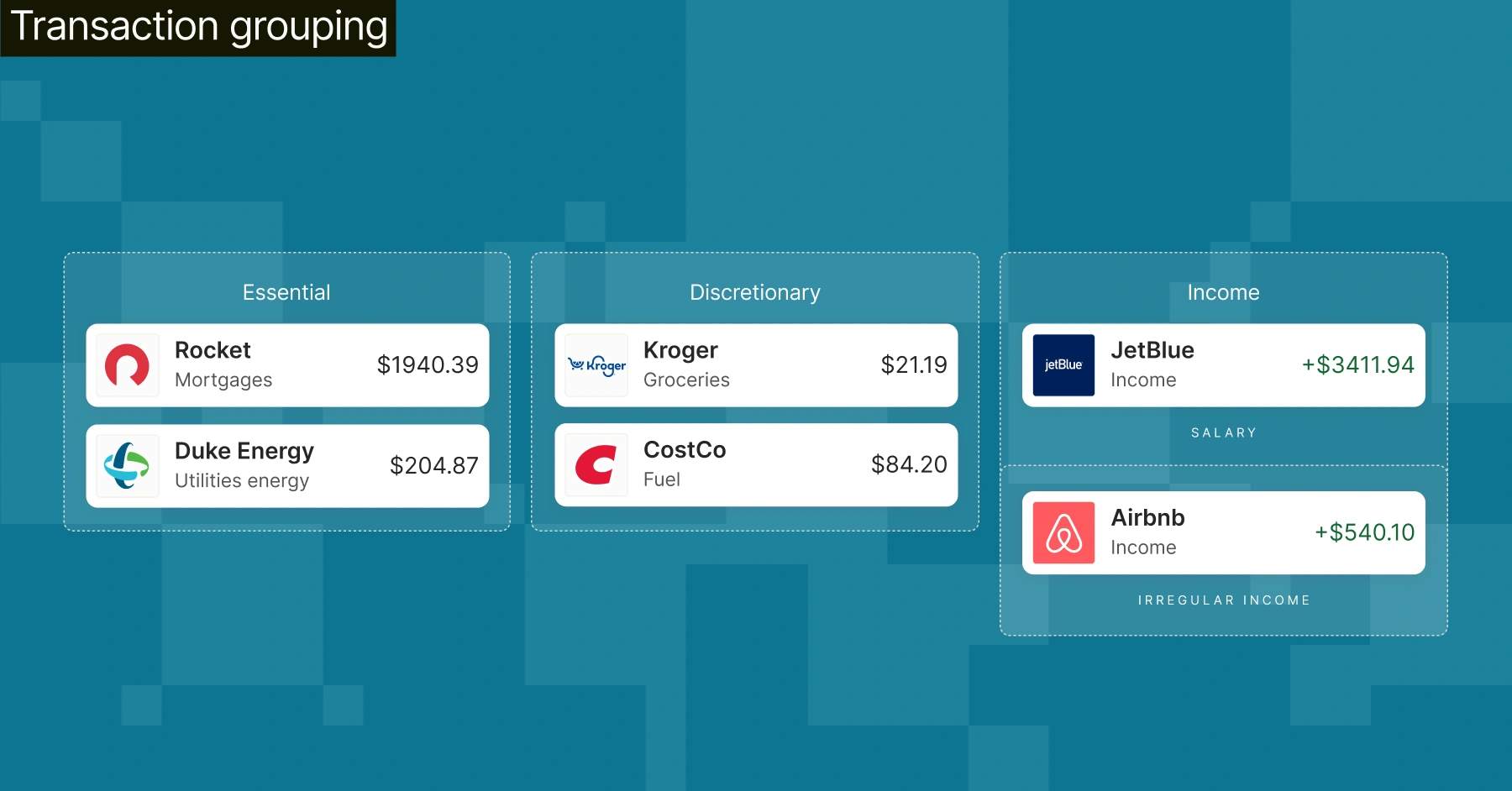 For each transaction, Bud applies a range of enrichments, including categories, merchants, entities, processors, and locations. These labels make the data significantly easier to interpret and use, but on their own, they only provide a partial view of the customer.